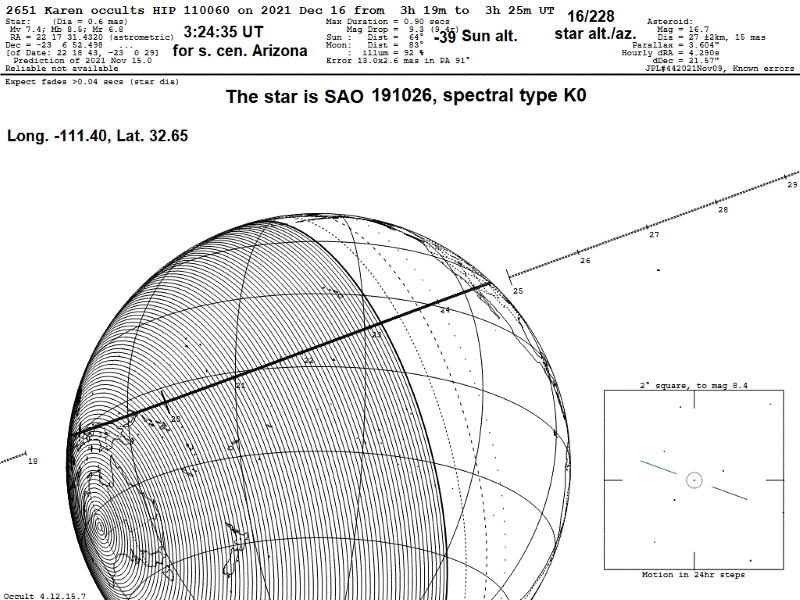 (2651) Karen occults HIP 110060 Dec 16th 2021 UT